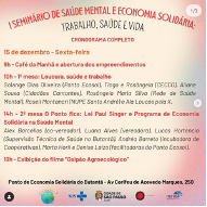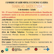 O seminário aconteceu nos dias 15, 16 e 17 de dezembro de 2023. Espaço para a troca de experiências e criação coletiva de saídas, de modo que o cooperativismo social deixe de ser uma utopia. Nestes 7 anos de existência do Ponto Ecosol Butantã, as relações entre a economia solidária e a saúde mental têm mudado nossas vidas e proposto transformações territoriais. Como uma ação de formação com investimento financeiro projeto supernova, pela subvenção de parceria com a Thousand Currents, construímos este evento em muitas mãos, com representantes dos empreendimentos incubados pelo Ponto Butantã, do Conselho Gestor deste equipamento, da Associação Vida em Ação e da Incubadora Tecnológica de Cooperativas Populares vinculada à USP.